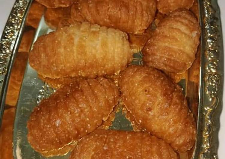 - Sab se phely maida me ghee dal kar crumb kar Lein phir maida me suji,baking powder,aur sugar dal kar mix karein aur pani dal kar smooth dough bana Lein 10 15 minutes freez m rack dhen. - Phir dough ke small small balls bana kar fork /spider strainer per rack kar press karein